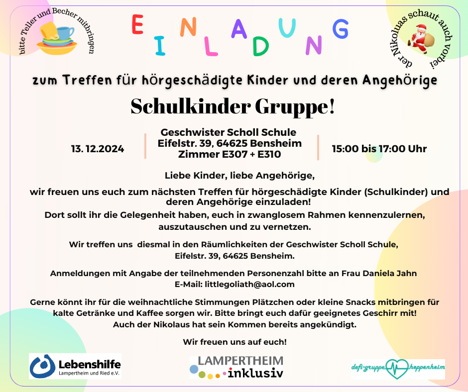 Das kommende Treffen am 13.12.24 in den Räumlichkeiten der Geschwister Scholl Schule Bensheim, richtet sich diesmal an Schulkinder.